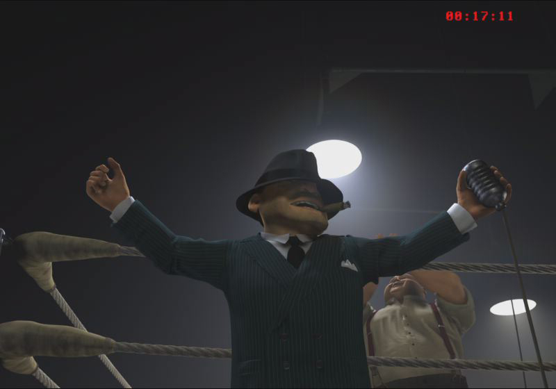 Notre héro. Acteur virtuel à la fois naïf et sans peur. L’audience assiste à sa naissance (où plutôt de sa construction…) Une fois prêt pour son close-up, Slim se retrouve soudainement en 1932 et devient la star involontaire d’un match de boxe hilarant entre un tout petit homme et une montagne de muscles. Notre pauvre héro doit utiliser toutes ses ressources pour rester dans la partie!